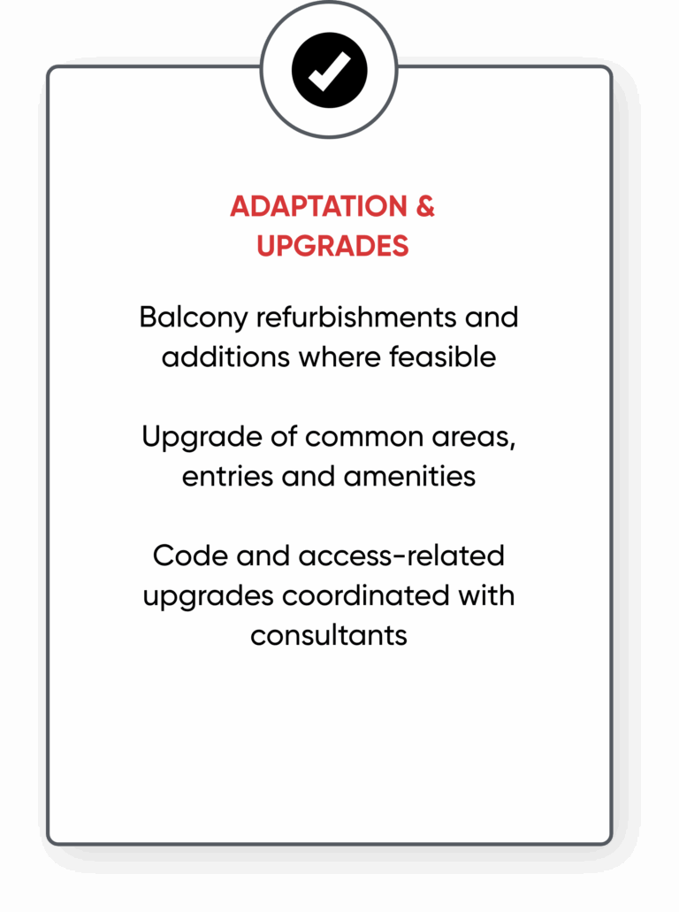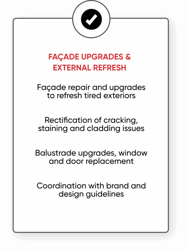 - Façade upgrades, waterproofing, concrete repairs & defect rectification